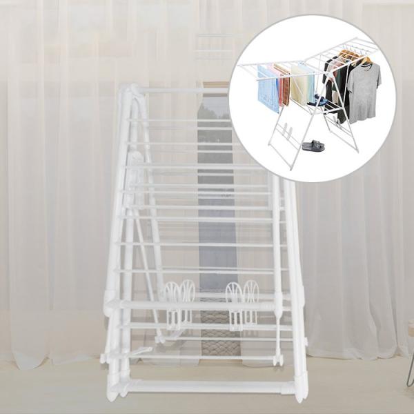 Giving You a Little More: This laundry rack has 20 drying poles on 2 levels. In addition, the upper wings can be adjusted in height so that you can also hang long garments.
